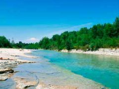 Méandre populaire de la rivière avec des plages et de bonnes corniches et des bassins pour sauter.