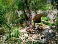 Ancienne passerelle dans les Gorges du Caramy. Principalement eau peu profonde, mais bassins plus profonds à 200 m en amont.